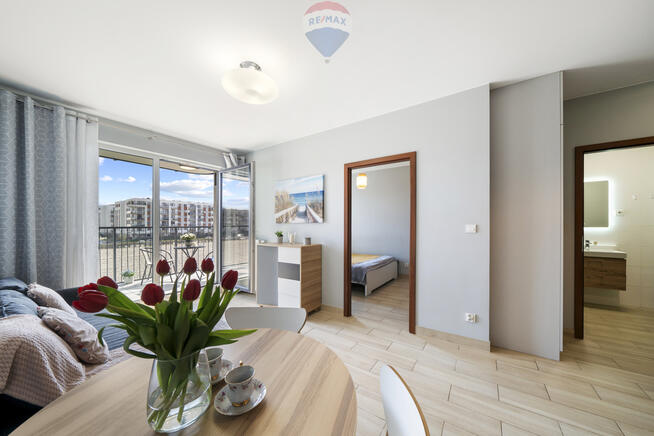 Opis lokalu: DOSTĘPNE OD 2026-05-06! Do wynajęcia dwupokojowe mieszkanie z tarasem i mp przy ul. Rajska 4 w Marina ...